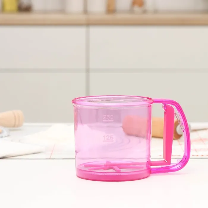 Кружка - сито для просеивания муки Доляна, 250 мл, пластик, розовая
