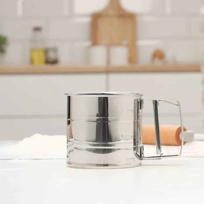 Кружка - сито для просеивания муки, крупы, манки. сахарной пудры. какао порошка и других сыпучих продуктов - аксессуар нового поколения!