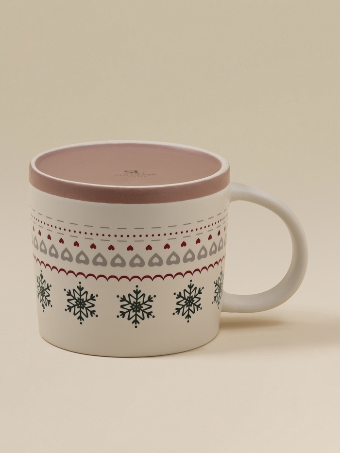 Эта фарфоровая кружка с зимним узором создаёт атмосферу уютного праздника в каждой детали. Объём 430 мл удобен для горячего шоколада, какао или ароматного чая — матовая поверхность приятно согревает ладони. Бежевый фон подчёркивает изящество снежного узора, нанесённого устойчивой техникой деколь.