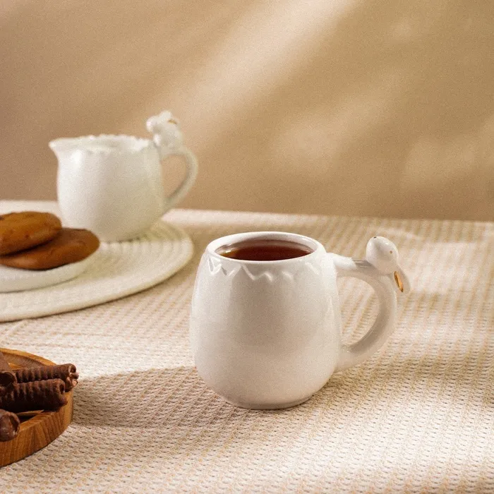 - Дизайн с душой: изображение пасхальных кроликов создает атмосферу уюта и праздника, делая каждое утро немного радостнее.