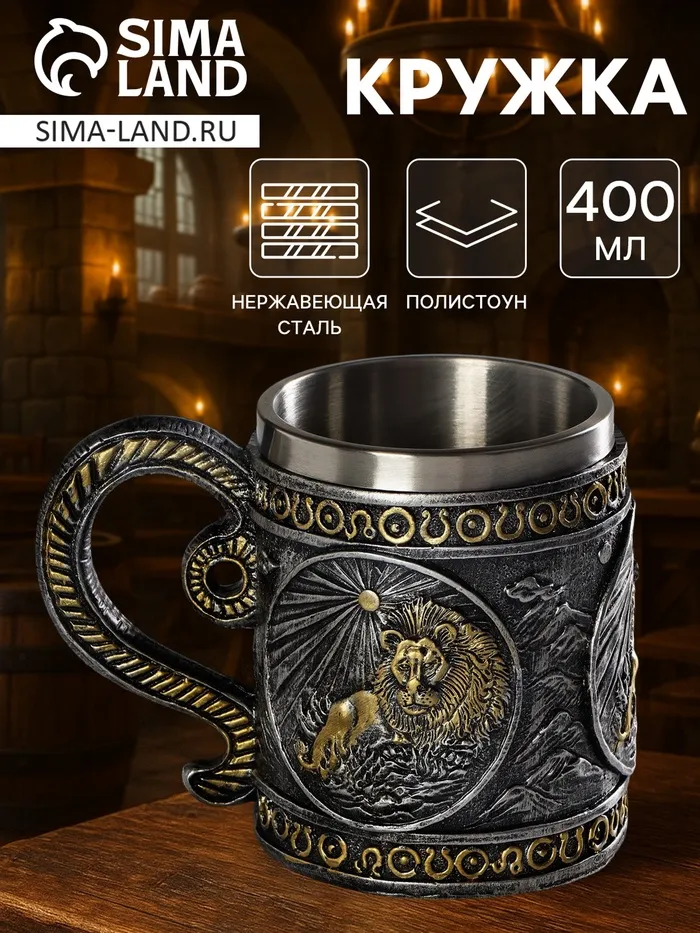 Кружка средневековая «Лев», 400 мл, нержавеющая сталь, серебристая — Характеристики