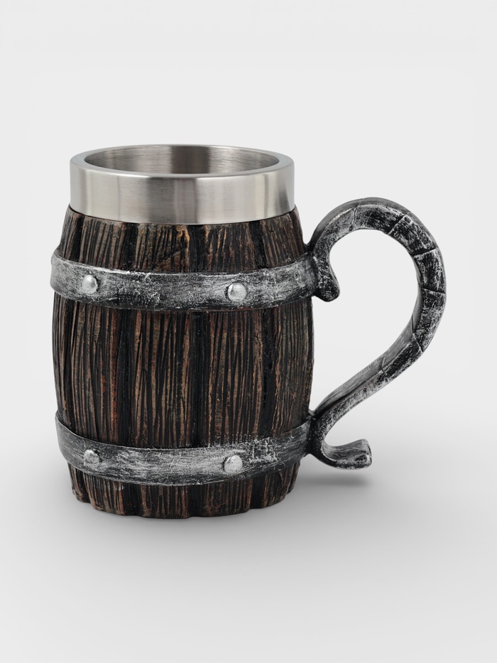 Коричневая кружка с рельефной таверной — для тех, кто ценит атмосферу старинных пиров и уют гостеприимных стен. Матовая поверхность имитирует состаренное дерево, а объём в 600 мл вместит горячий напиток на долгий вечер — будь то травяной чай, глинтвейн или кофе после трудового дня. Основа из нержавеющей стали обеспечивает устойчивость, а полистоун точно передаёт детали выдавленного рисунка без красок и наклеек.