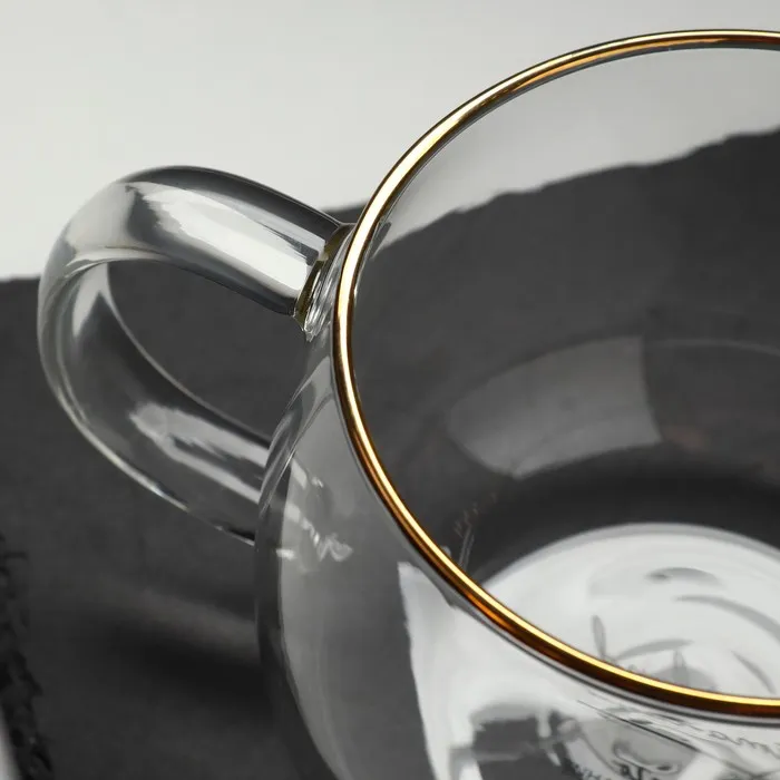 Кружка стеклянная с золотой деколью и объёмом 400 мл станет прекрасным дополнением к вашему интерьеру и подарят незабываемые моменты наслаждения горячим напитком.