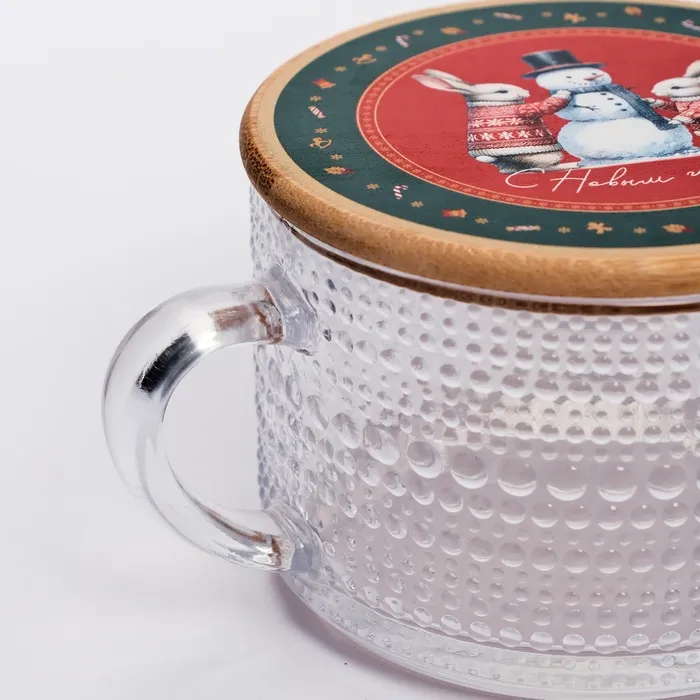 Кружка стеклянная новогодняя «С Новым годом!», 450 мл, с крышкой — Характеристики