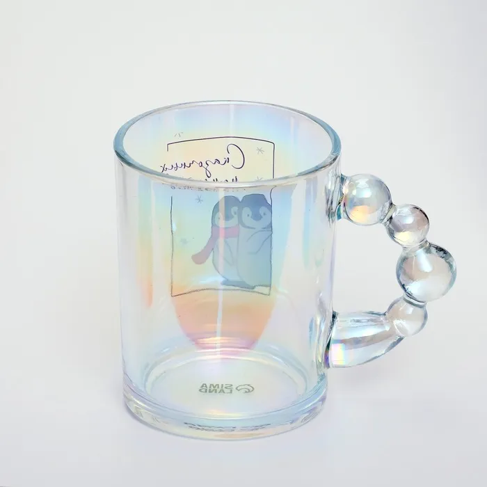 Новогодняя стеклянная кружка с формовой ручкой и голографией — идеальный выбор для новогодних праздников. Объём 350 мл и необычный дизайн кружки делают эту кружку прекрасным подарком для ваших друзей и близких.
