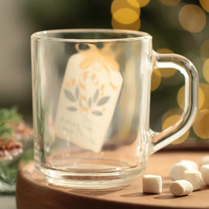 Стеклянная новогодняя кружка объёмом 200 мл — это стильный и практичный аксессуар для вашей кухни или офиса.