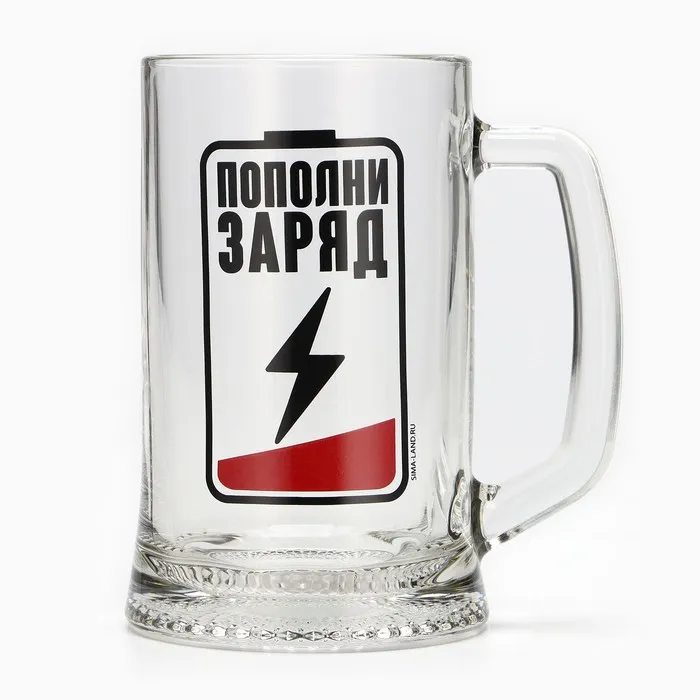 Кружка стеклянная пивная «Пополни заряд», 500 мл — Характеристики