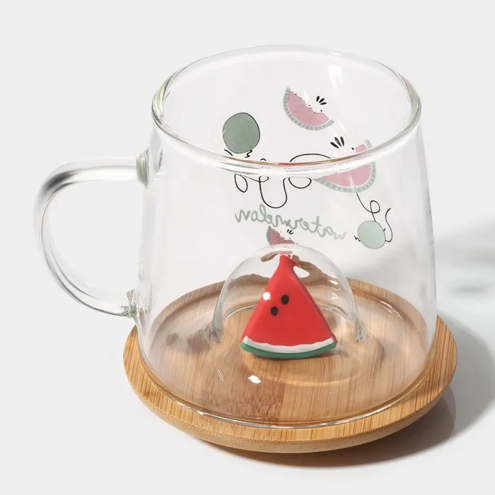 Кружка стеклянная с деревянной крышкой «Арбузик», 300 мл — Характеристики