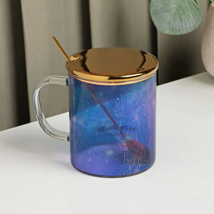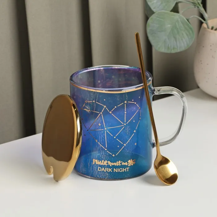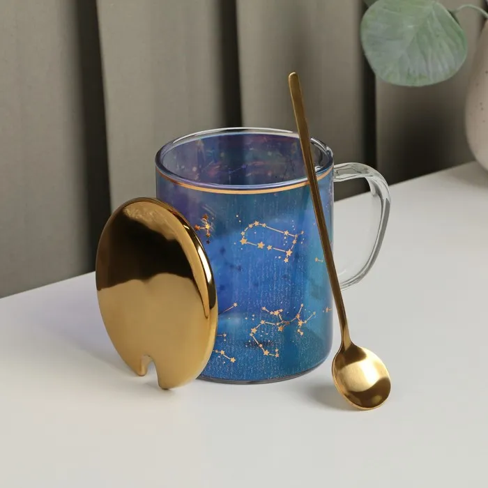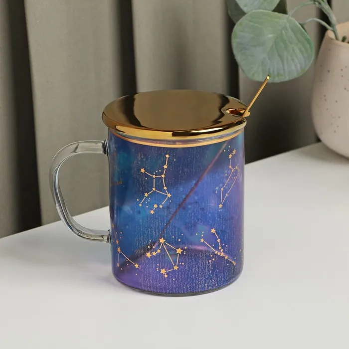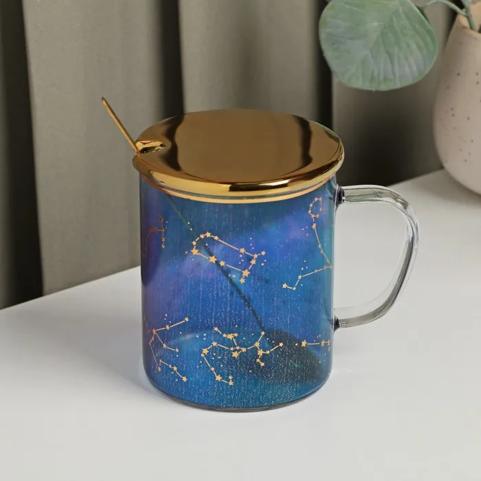 Кружка стеклянная с керамической крышкой и ложкой «Созвездие», 370 мл, цвет МИКС — Характеристики