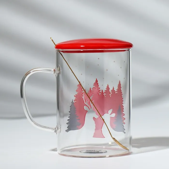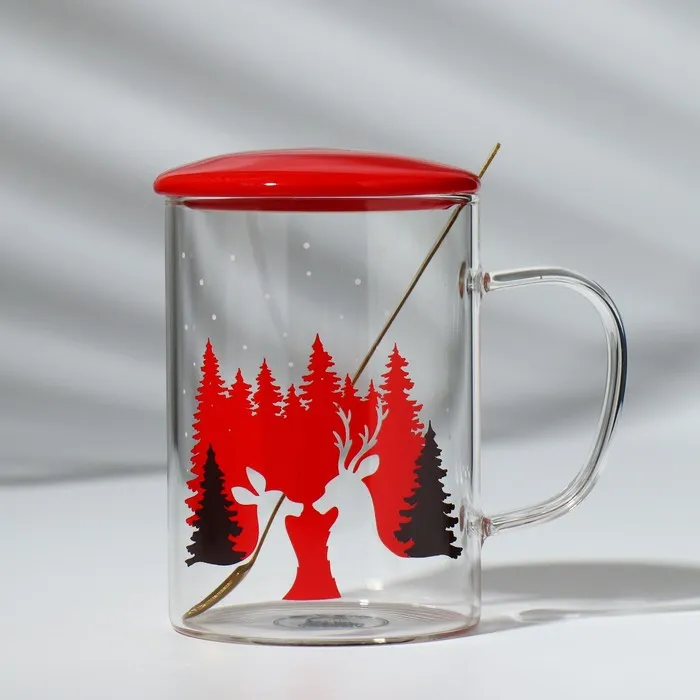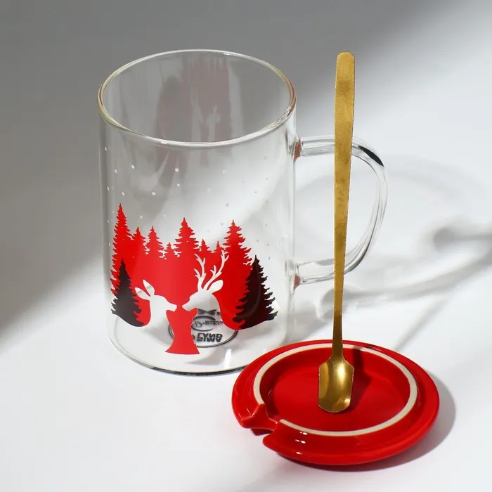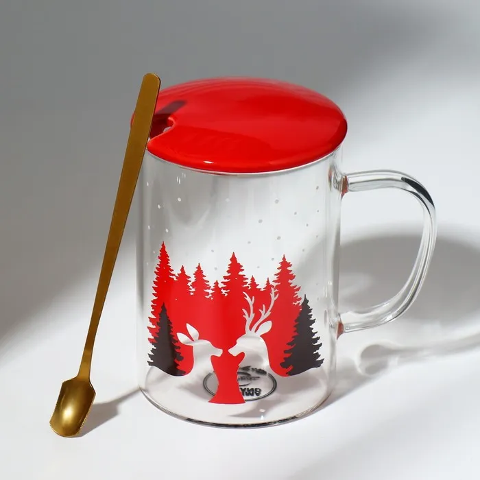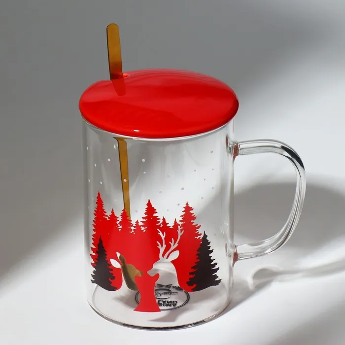 Кружка стеклянная с ложкой и крышкой «Зимний лес», 470 мл — Характеристики