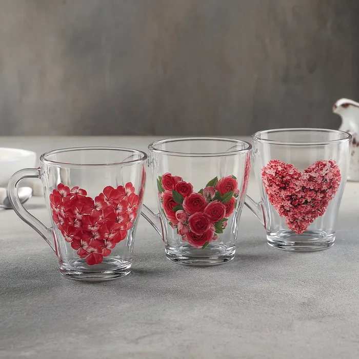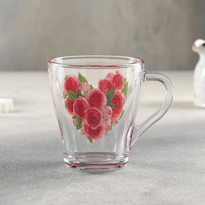 Кружка стеклянная «Цветочное сердце», 250 мл, рисунок МИКС — Характеристики