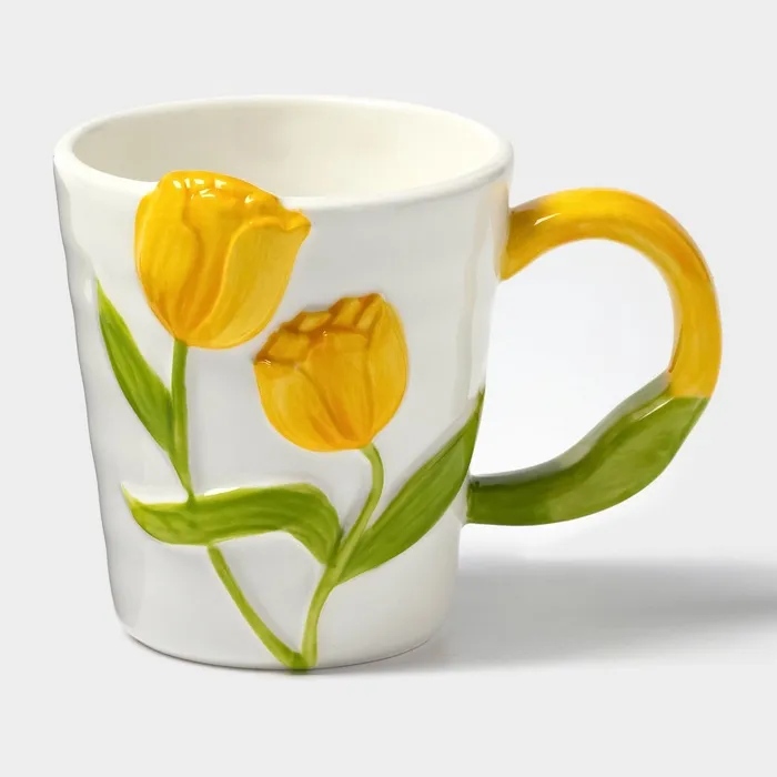 Керамическая кружка для чая «Тюльпан» объёмом 350 мл с жёлтым цветком — идеальный выбор для любителей горячих напитков.