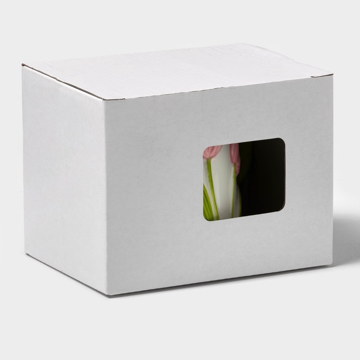 Кружка «Тюльпан», 430 мл, розовый цветок, керамика, белая — Характеристики