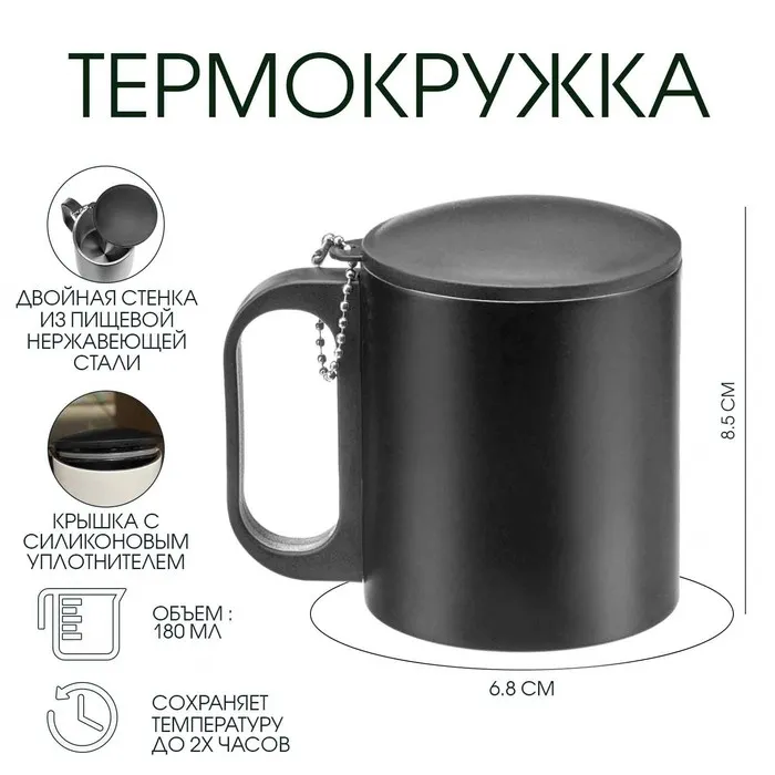 Кружка туристическая с фонариком «100% мужик», 170 мл — Характеристики