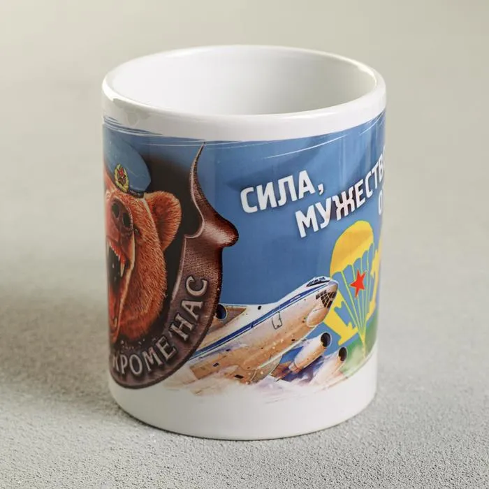 Кружка изготовлена из керамики. Рисунок нанесён методом сублимации, при котором краска проникает в верхний слой изделия, поэтому изображение получается стойким.