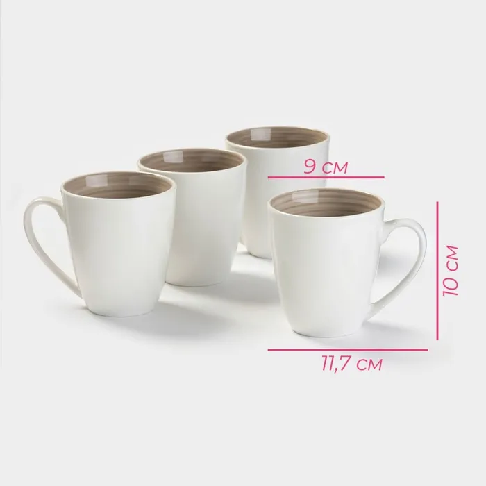 Кружки Доляна «Палитра», 350 мл, набор 4 шт., фарфор, белые, серые — Характеристики
