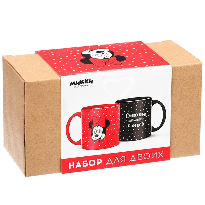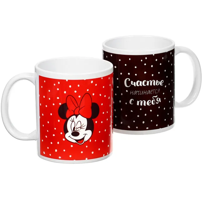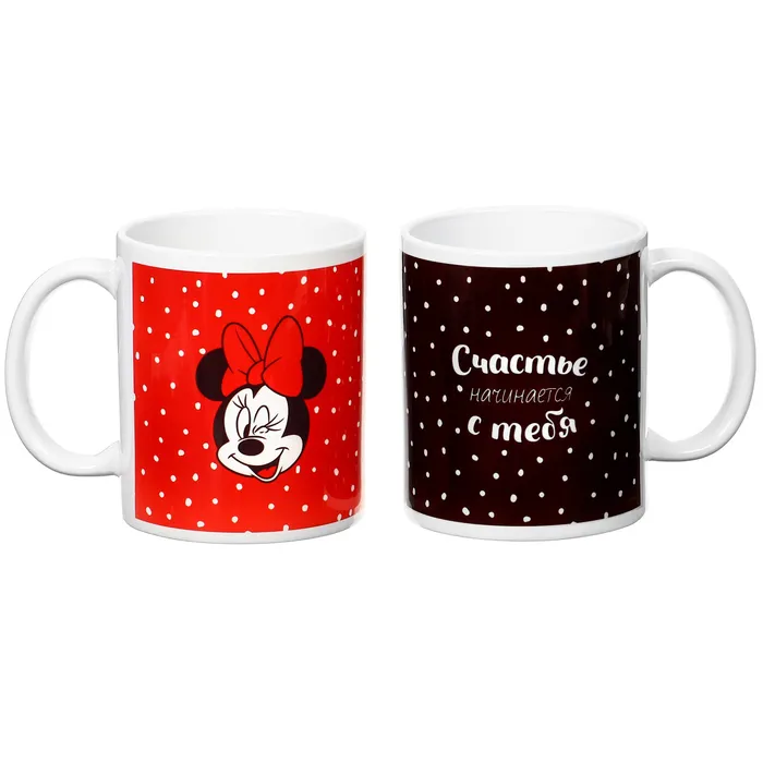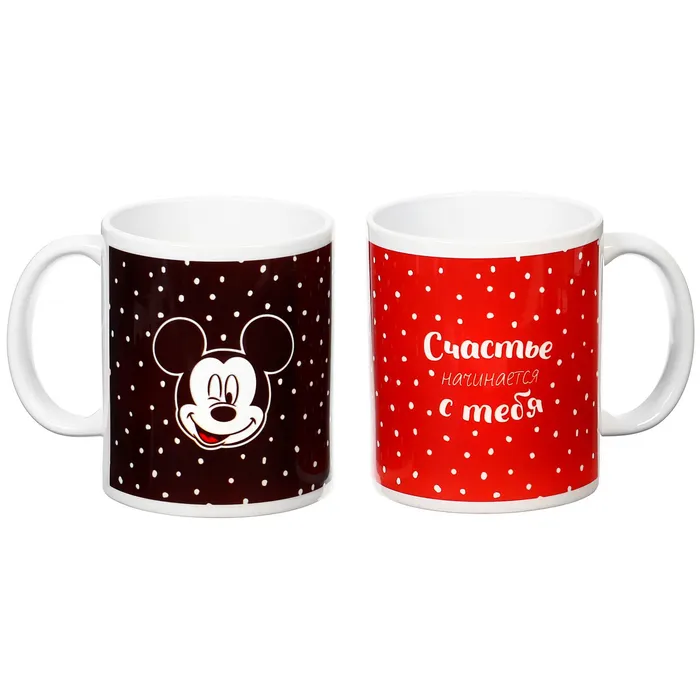 Кружки керамические парные «Счастье начинается с тебя», 320 мл, 2 шт., Микки и друзья — Характеристики