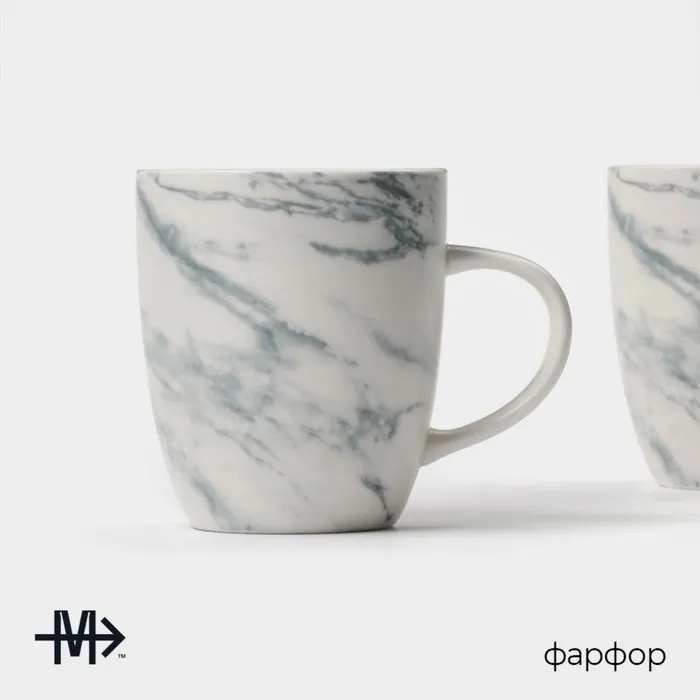 Кружки Magistro Real Marble, 400 мл, набор 2 шт., фарфор, белые — Характеристики