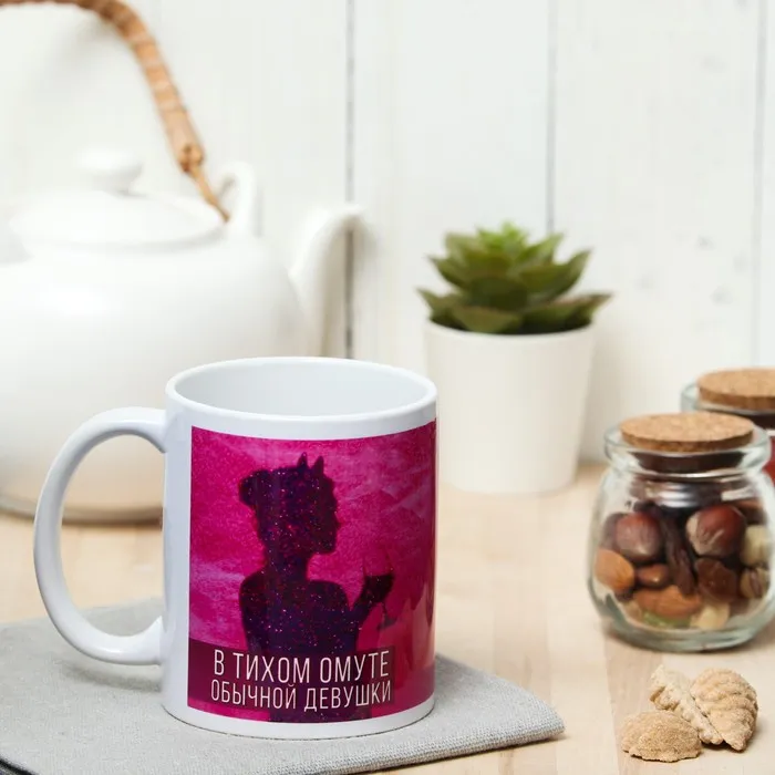Кружка изготовлена из керамики. Рисунок нанесён методом сублимации, при котором краска проникает в верхний слой изделия, поэтому изображение получается стойким.