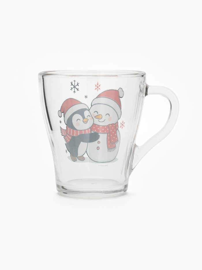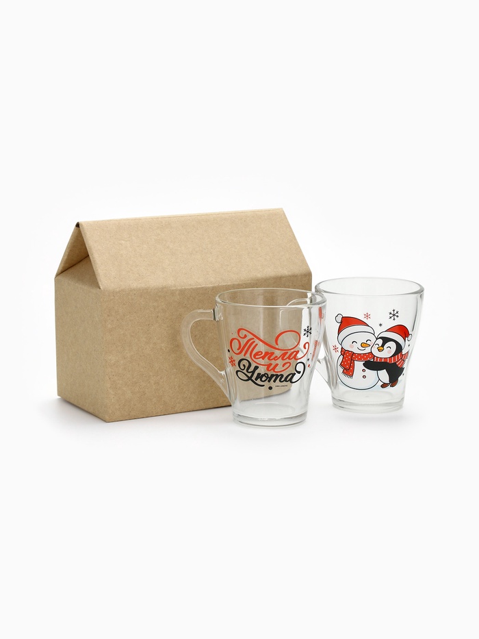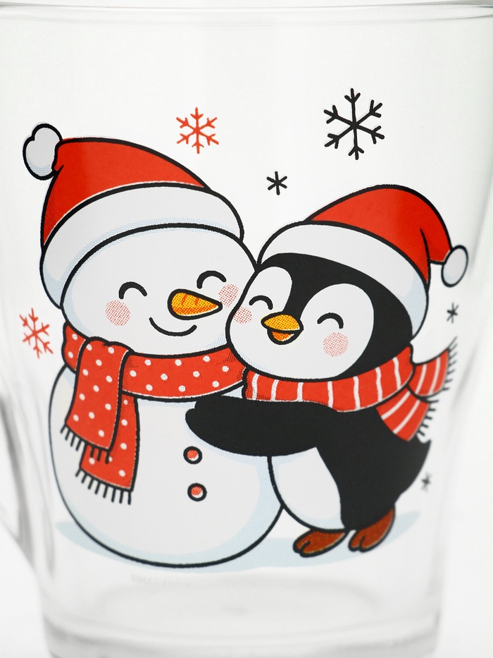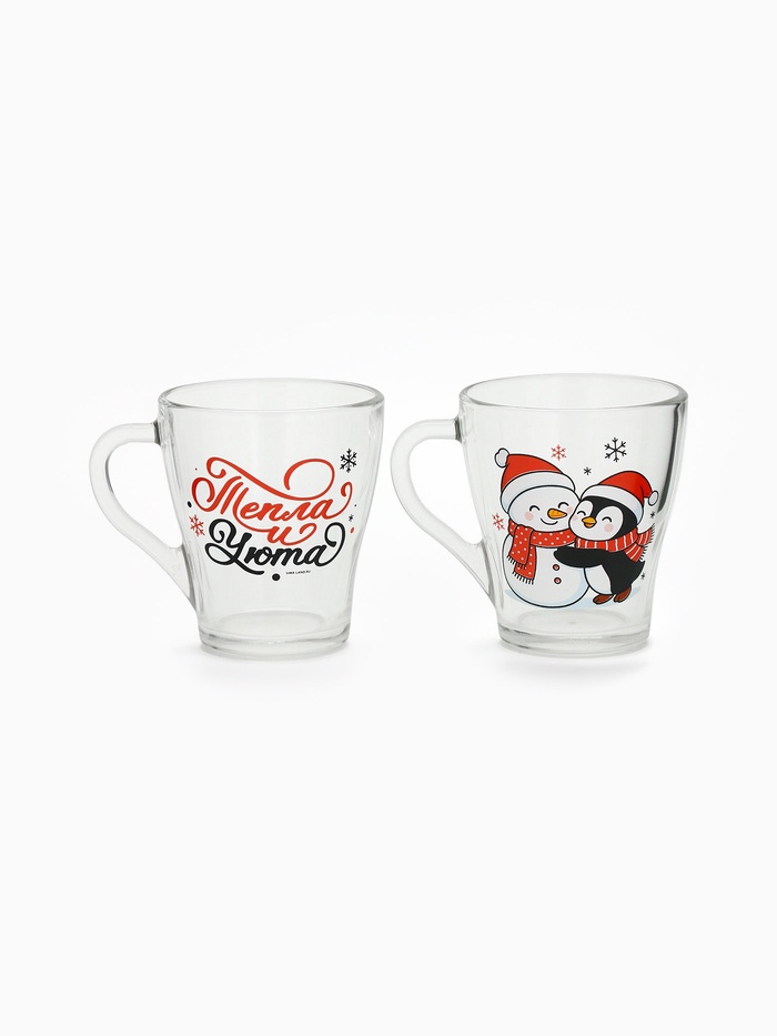 Набор кружек «Персонажи» — это тихий дуэт зимнего уюта, заключённый в прозрачное стекло. Две кружки — два героя одного вечера: на первой — пингвин, обнимающий снеговика, будто знает, что даже из снега можно сложить нечто тёплое; на второй — только фраза: ”Тепла и уюта”, без восклицаний, без пафоса, как шёпот перед сном. Никаких символов года, никаких дат — только момент, в котором хватает места для смеха, тишины и пары над какао.