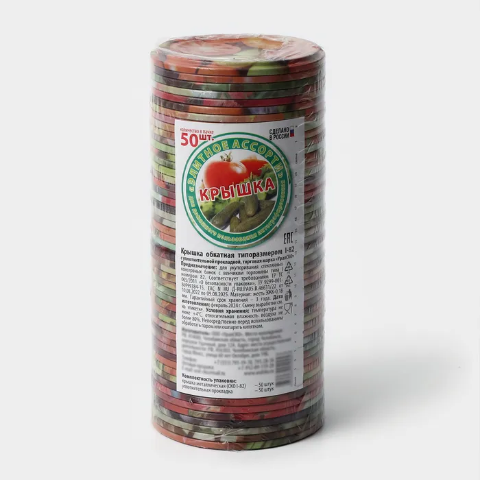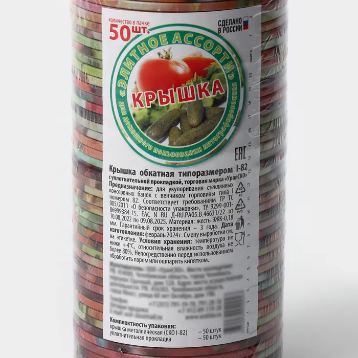 Крышка для консервирования «Элит», СКО-82 мм, жесть, лак, фасовка 50 шт., МИКС — Характеристики