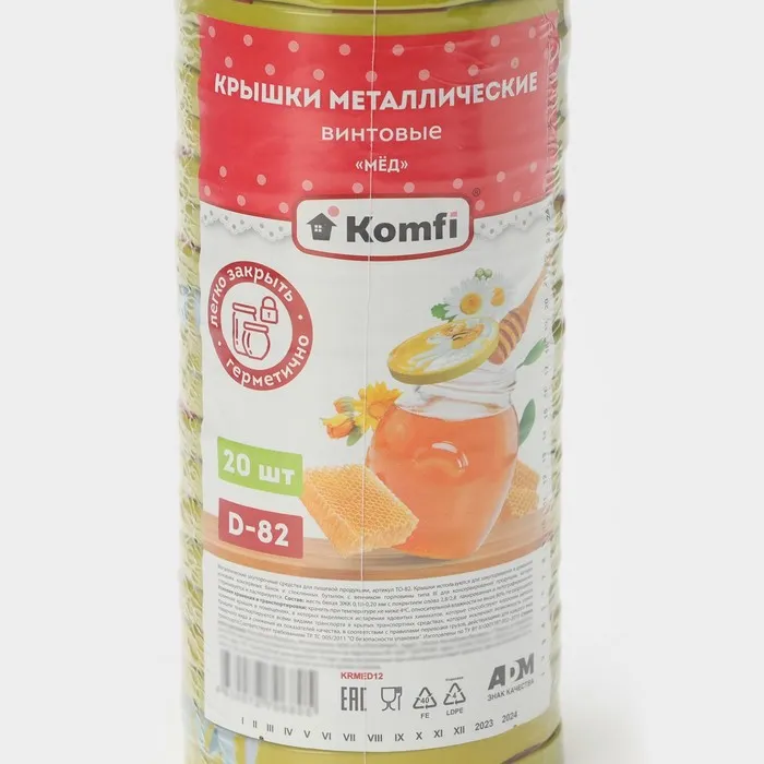 Крышка для консервирования Komfi «Мёд», ТО-82, жесть, винтовая, лак, литография, фасовка, 20 шт. — Характеристики