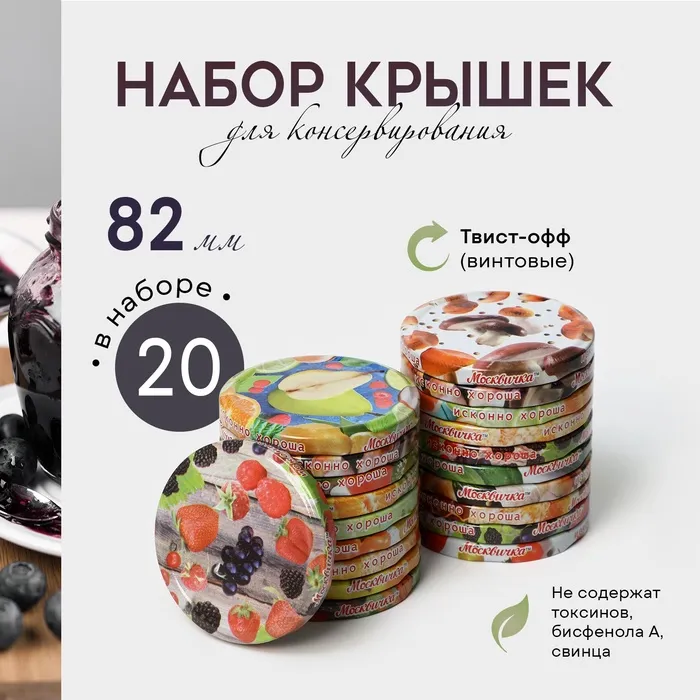 Крышки идеальны для тех, кто ценит простоту и надежность при консервировании. Избегайте использования в автоклавах или микроволновых печах для сохранения их функциональных характеристик. Эти крышки обеспечивают долговременную безопасность ваших домашних заготовок и придают готовым продуктам привлекательный вид.