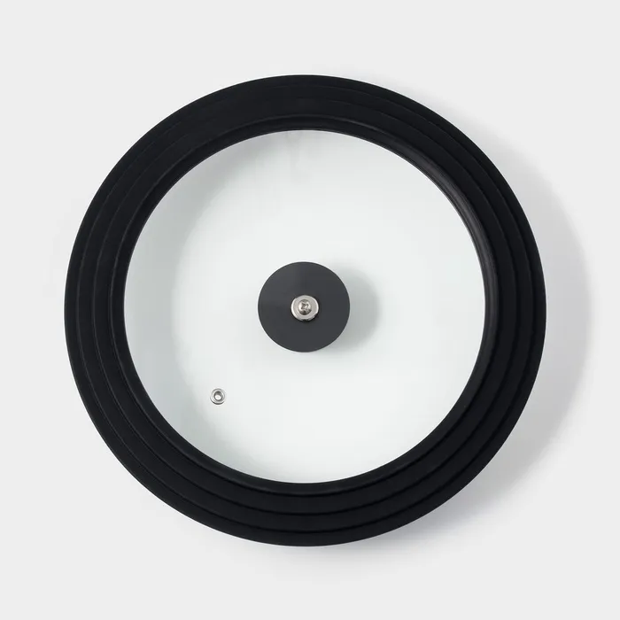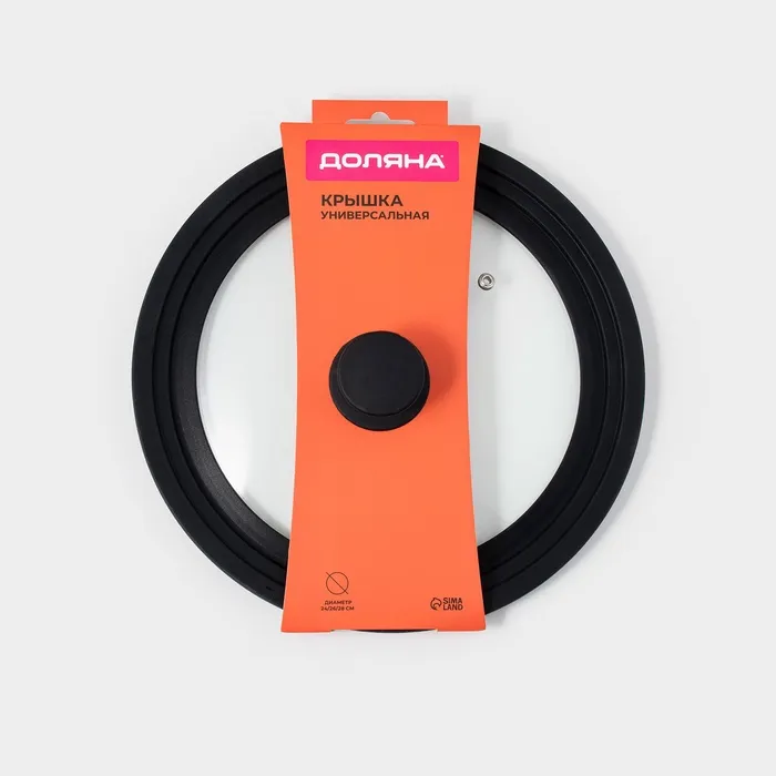 Крышка для сковороды и кастрюли Доляна, универсальная с силиконовым, ободком и ручкой, 24/26/28 см, чёрная — Характеристики