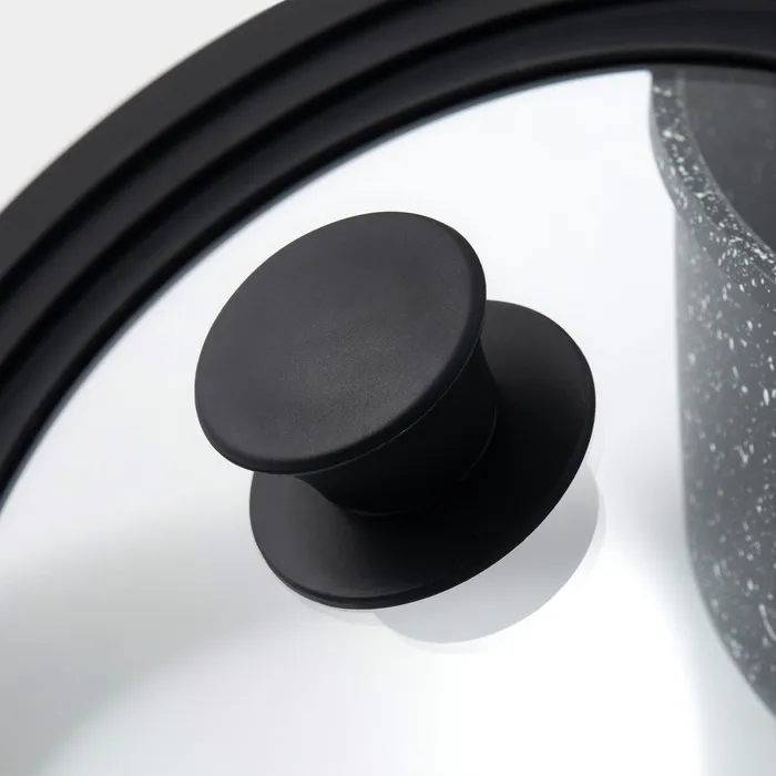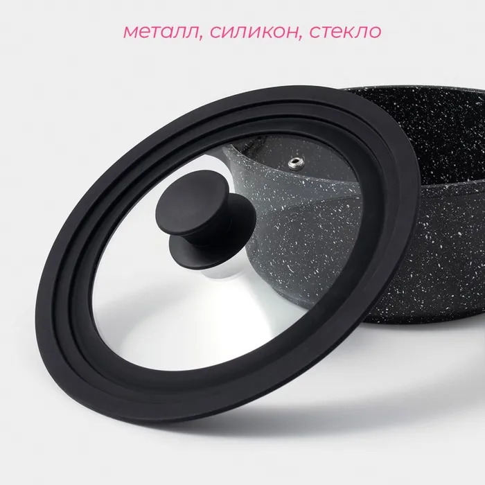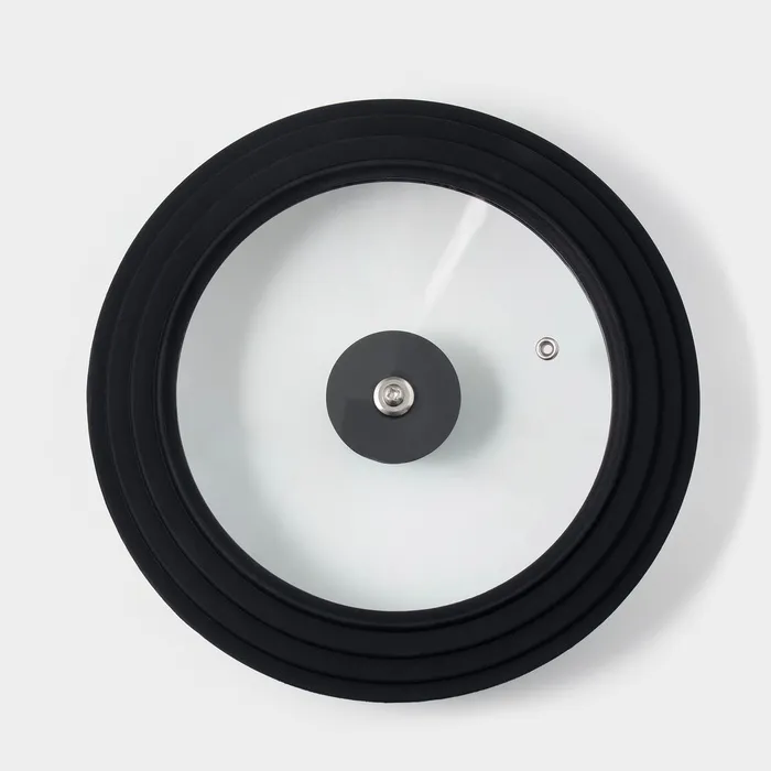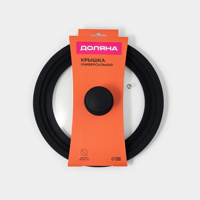 Крышка для сковороды и кастрюли Доляна, универсальная, с силиконовым ободком и ручкой, d=20/22/24 см, чёрная — Характеристики