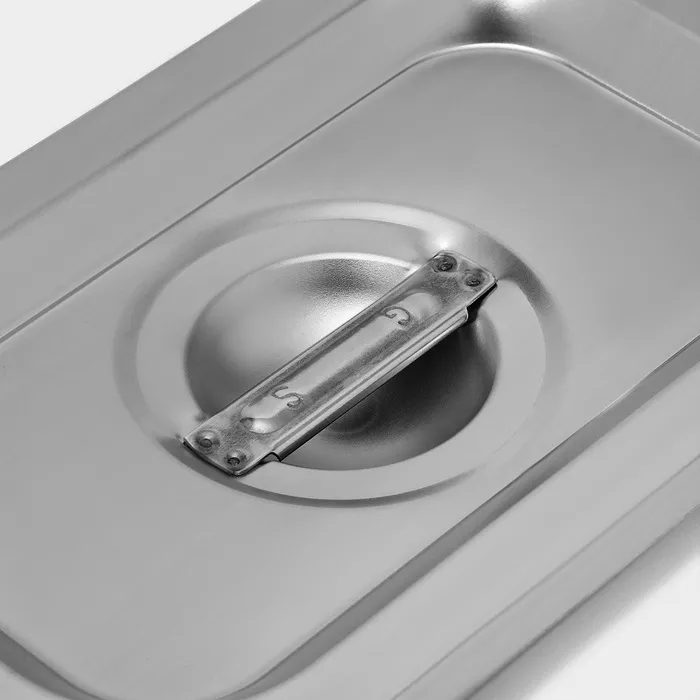Крышка из нержавеющей стали для гастроёмкости — незаменимый аксессуар для профессиональной кухни. Благодаря толщине 0,8 мм и высококачественным материалам, эта крышка обеспечит надёжность и долговечность использования. Герметичная и стильная крышка идеально подходит для различных типов гастроёмкостей и может использоваться в пароконвектоматах, конвекционных печах, холодильных и морозильных шкафах, столах и другом оборудовании. Сделайте вашу кухню ещё более функциональной и стильной с этой превосходной крышкой из нержавеющей стали!