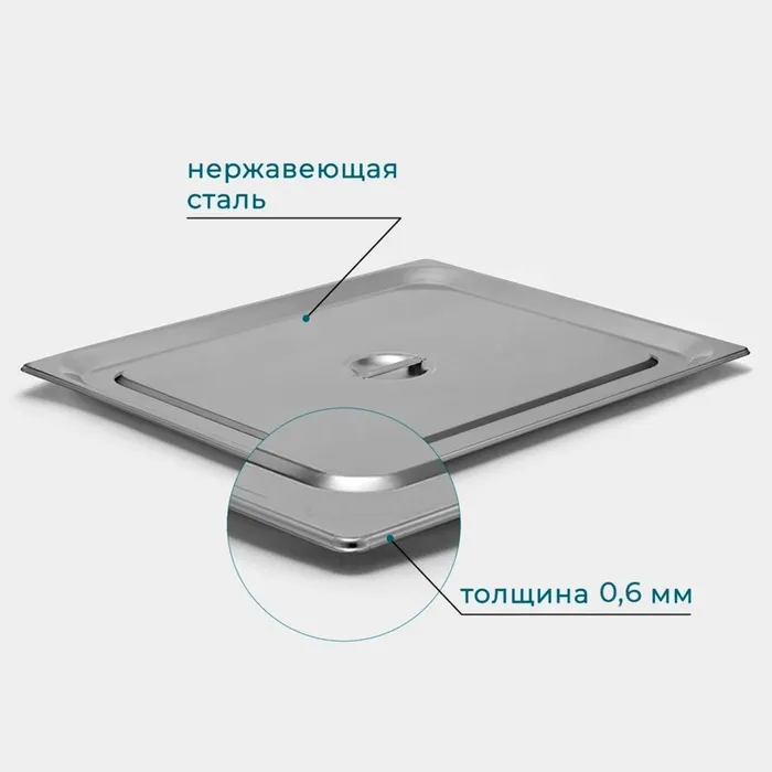 Крышка к гастроёмкости GN 2/1 Hanna Knövell, 65.4×53.3 см, толщина 0.6 мм, нержавеющая сталь — Характеристики