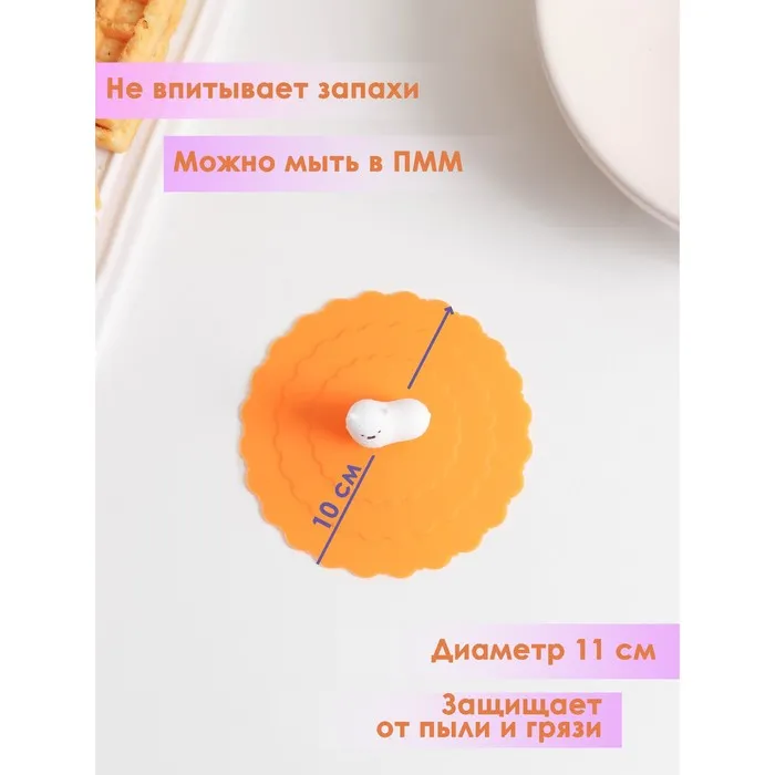 Крышка - непроливайка силиконовая Доляна «Лама», d=10 см, оранжевая — Характеристики