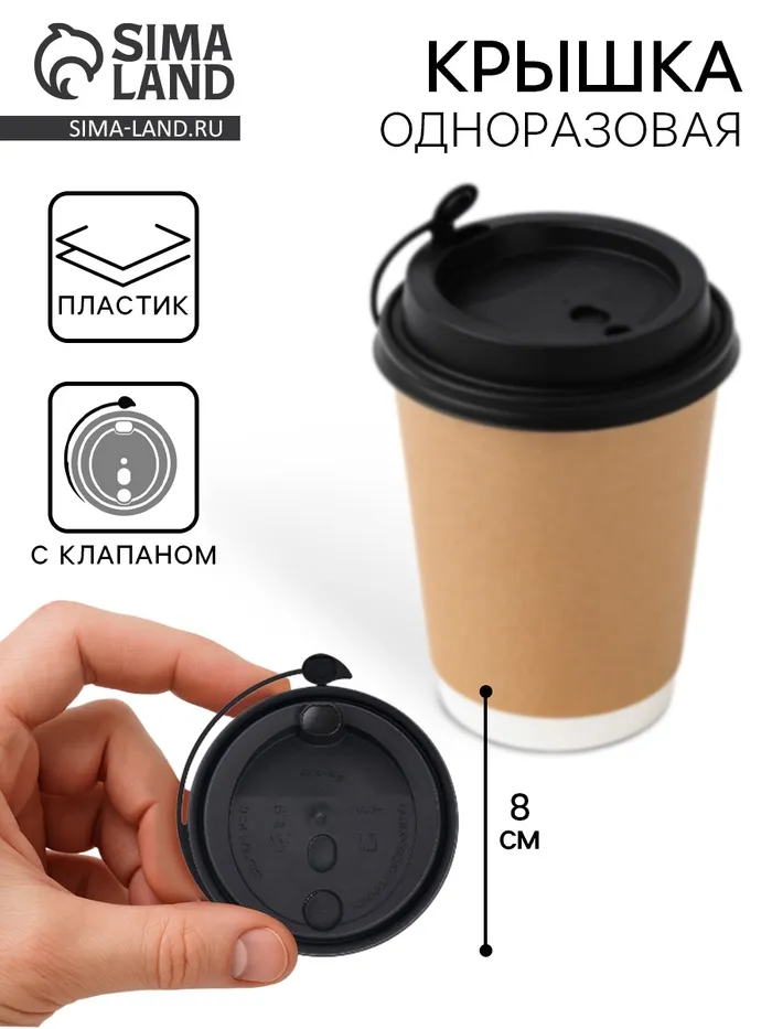 Крышка одноразовая для стакана «Чёрная» с клапаном, матовая 80 мм — Характеристики