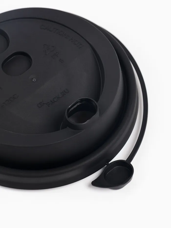 Крышка одноразовая для стакана «Чёрная» с клапаном, глянец 90 мм