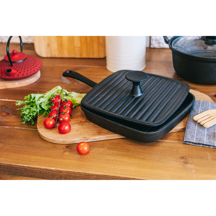 Крышка-пресс для гриля Доляна «Квадрат», чугун, 23×23 см, чёрная — Характеристики