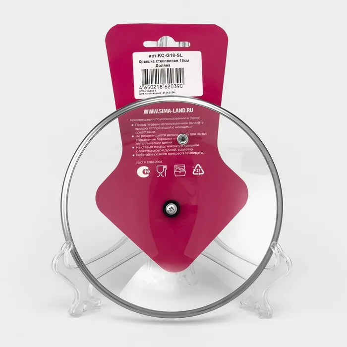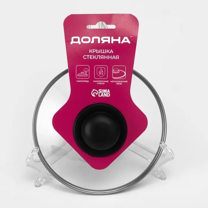 Крышка стеклянная для сковороды и кастрюли «Доляна», d=18 см, нержавеющий обод, пластиковая ручка — Характеристики