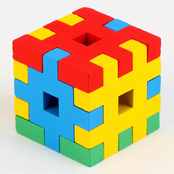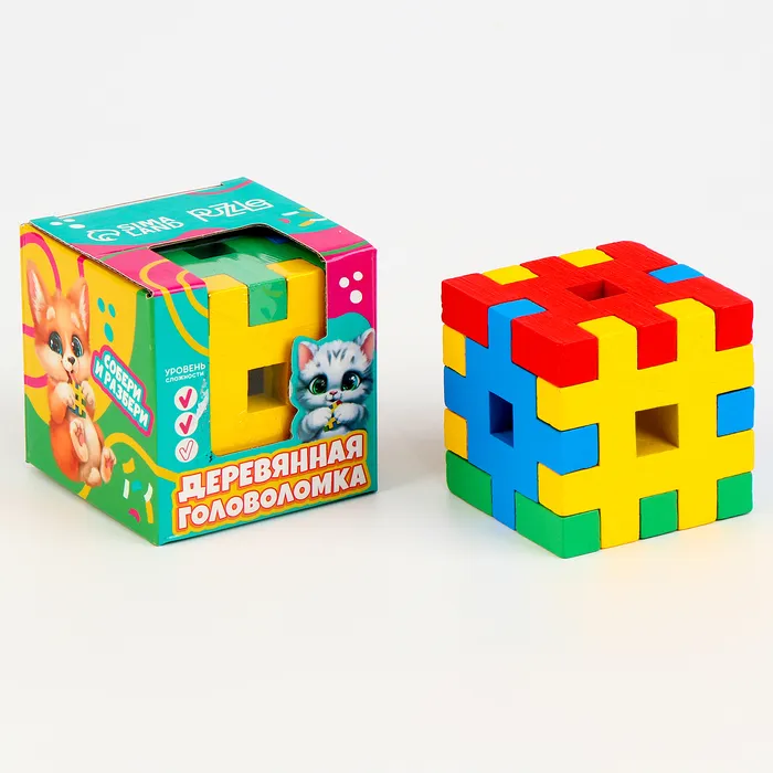 Развивайте логику и моторику через игру! Деревянная головоломка «Цветной куб» — это компактный тренажёр для ума и пальчиков. Натуральное дерево, приятное на ощупь, и продуманная форма деталей делают сборку удобной даже для детей от 5 лет.