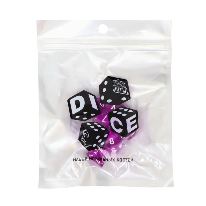 Фиолетовый комплект дайсов для настольных ролевых игр — выбор для поклонников DnD и других сюжетных игр с кубиками. Семь граненых костей из акрила придают процессу атмосферу магии и уверенности, органично вписываясь в коллекцию любого игрока.