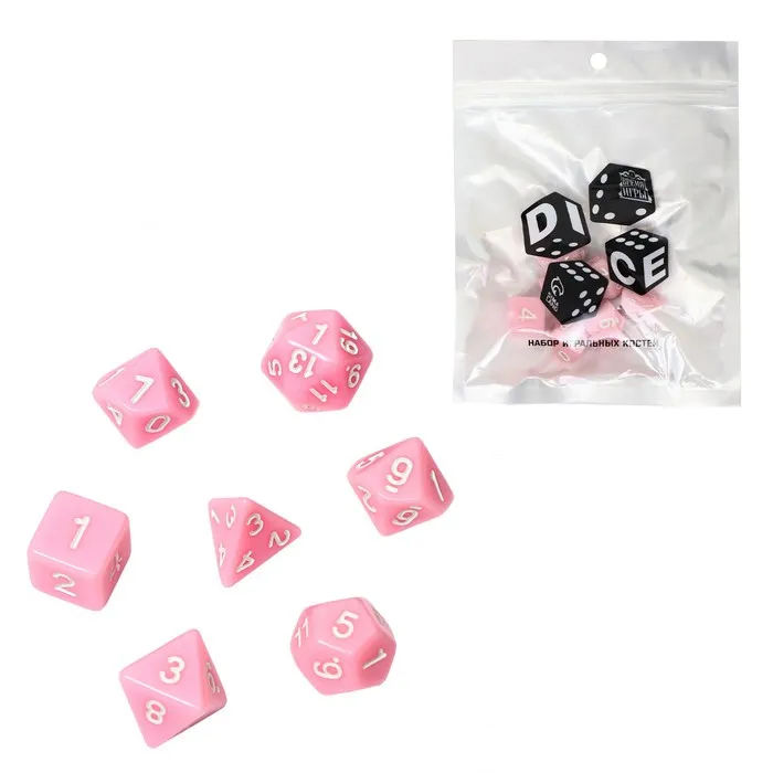 Кубики - дайсы для ДнД, набор 7 шт., розовые