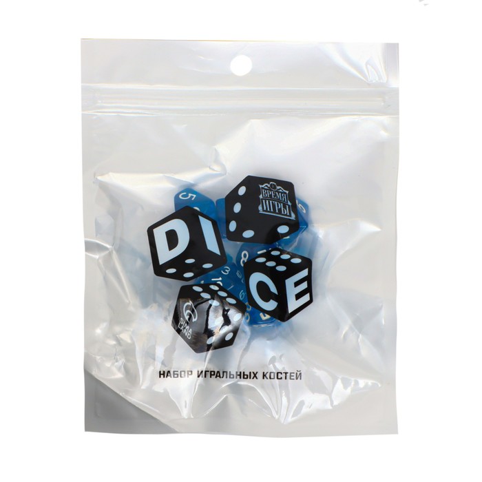 Набор синих дайсов для ролевых и настольных игр — набор кубиков для вечеров за DnD, Pathfinder и любыми настольными приключениями. Полупрозрачные грани выделяются на столе, добавляя оттенок загадки и динамики в игровой процесс.