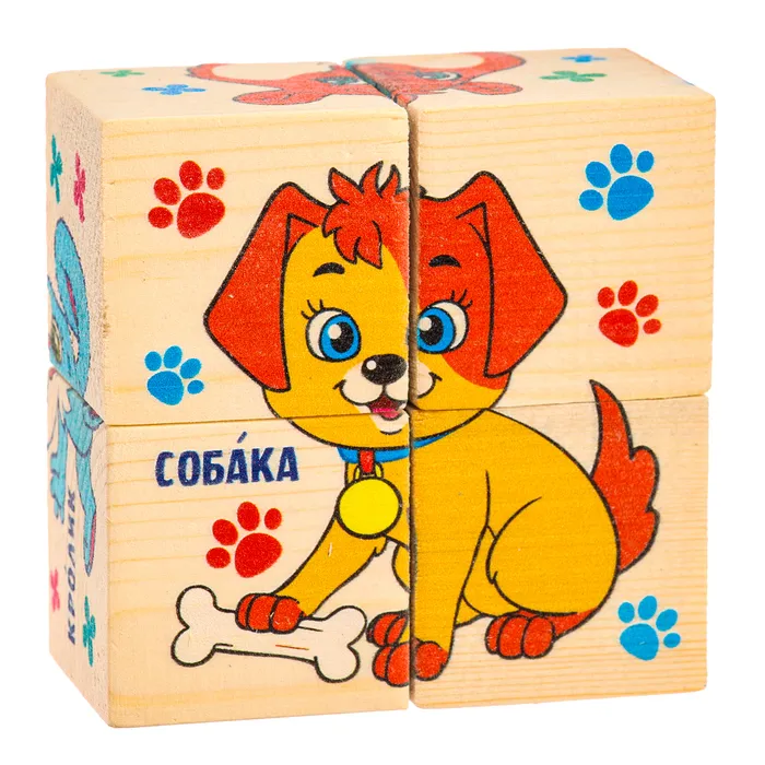 Детки полюбят деревянные кубики за яркость, приятные тактильные ощущения и возможность собрать 6 разных картинок. Предложите крохе разгадать загадку, связанную с изображениями на кубиках. Кроме того, они позволят познакомить малыша с геометрическими фигурами, цифрами, буквами, животными и транспортом.