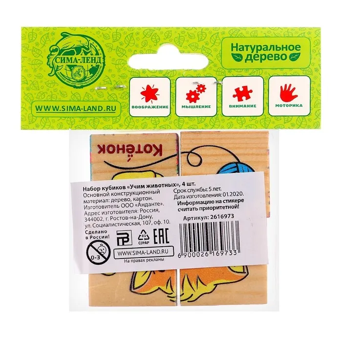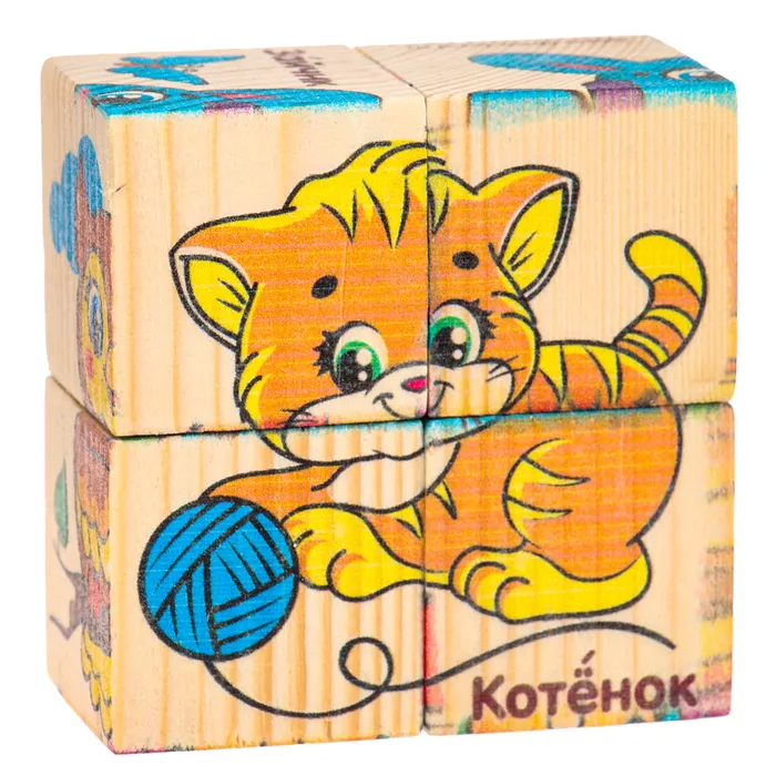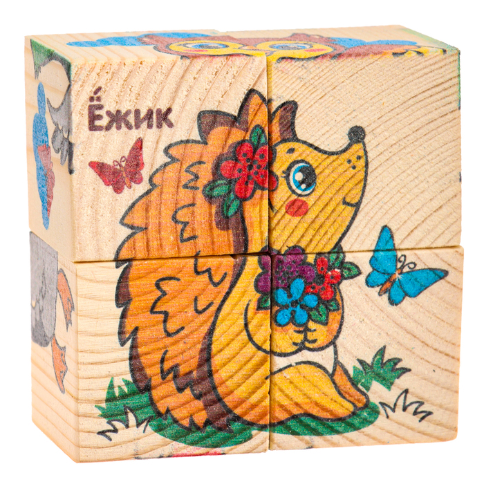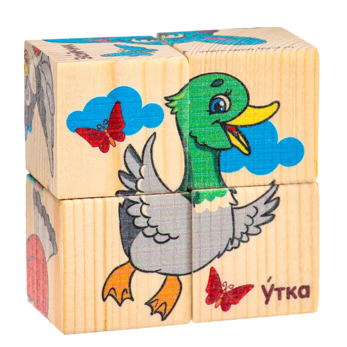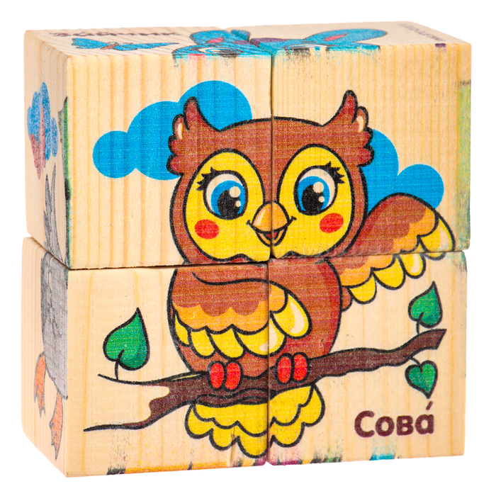 Кубики деревянные «Учим животных», набор 4 шт. — Характеристики