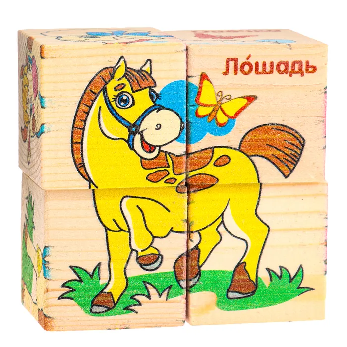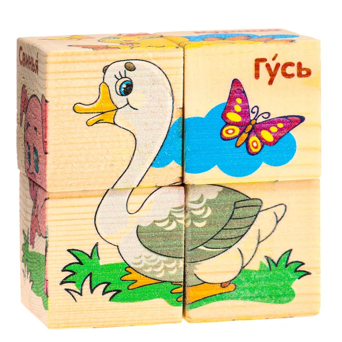 Детки полюбят деревянные кубики за яркость, приятные тактильные ощущения и возможность собрать 6 разных картинок. Предложите крохе разгадать загадку, связанную с изображениями на кубиках. Кроме того, они позволят познакомить малыша с геометрическими фигурами, цифрами, буквами, животными и транспортом.