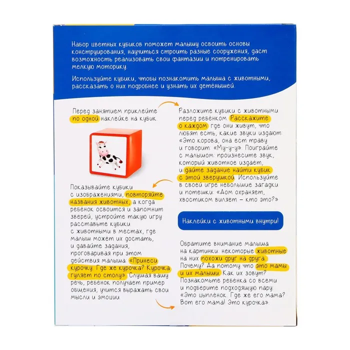 В комплекте идут наклейки, которые помогут малышу выучить животных.
