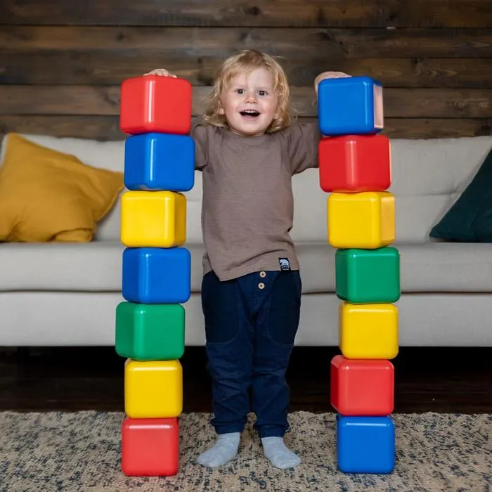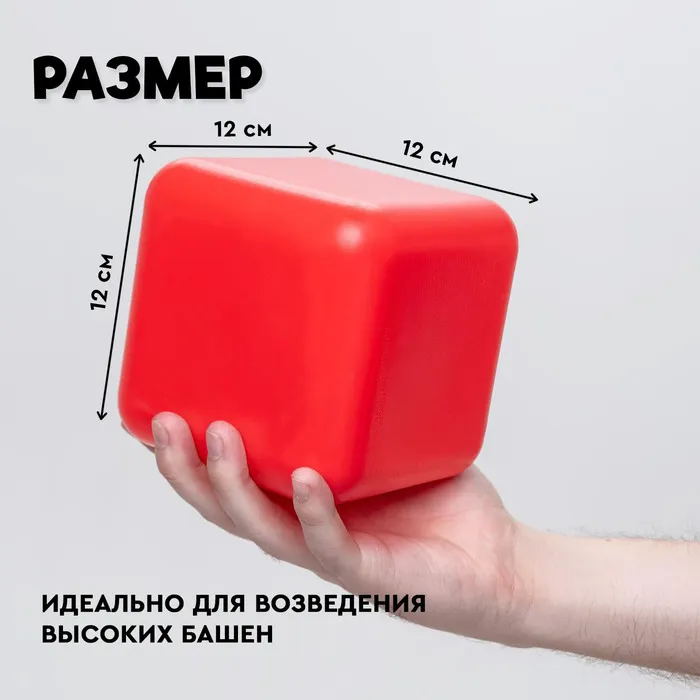Красочный строительный набор разовьёт у крохи мелкую моторику, координацию движений, воображение, логическое и образное мышление, навыки конструирования. Из ярких кубиков малыш построит множество вариаций, с каждым новым разом совершенствуя свою фантазию. Каждая деталь имеет правильную геометрическую форму, благодаря чему собранные конструкции устойчивы. Размер граней составляет 12 см, что идеально подойдёт для возведения высоких башен!