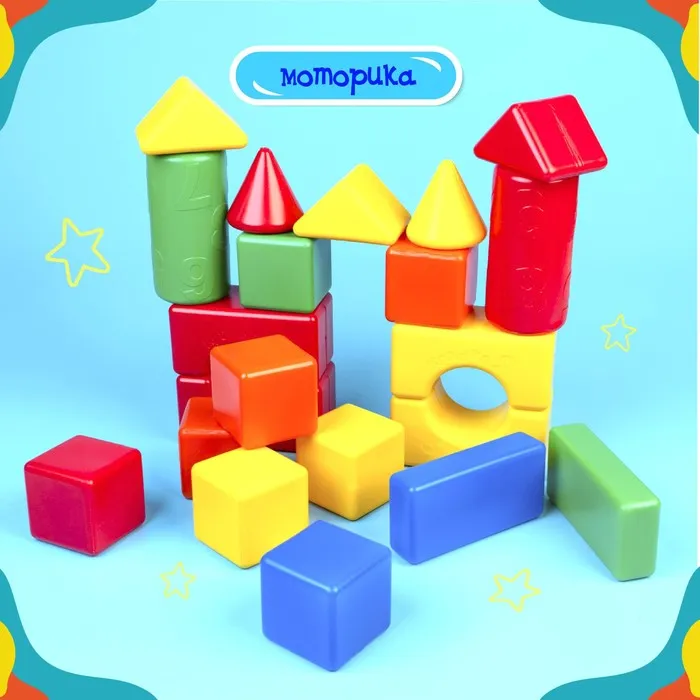 Красочный строительный набор разовьёт у крохи мелкую моторику, координацию движений, воображение, логическое и образное мышление, навыки конструирования. Из ярких частей малыш построит множество вариаций, с каждым новым разом совершенствуя свою фантазию.