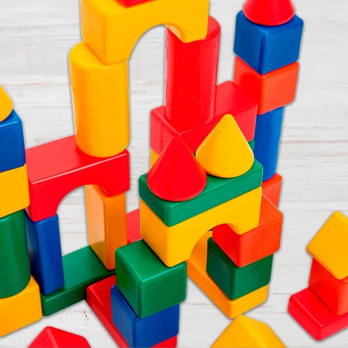 Красочный строительный набор разовьёт у крохи мелкую моторику, координацию движений, воображение, логическое и образное мышление, навыки конструирования. Из ярких частей малыш построит множество интересных вещей, с каждым разом совершенствуя свою фантазию.