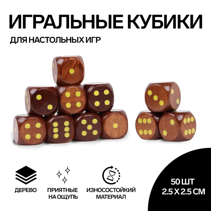 Кубики игральные, 2,5×2,5 см, набор 50 шт., коричневые — Характеристики