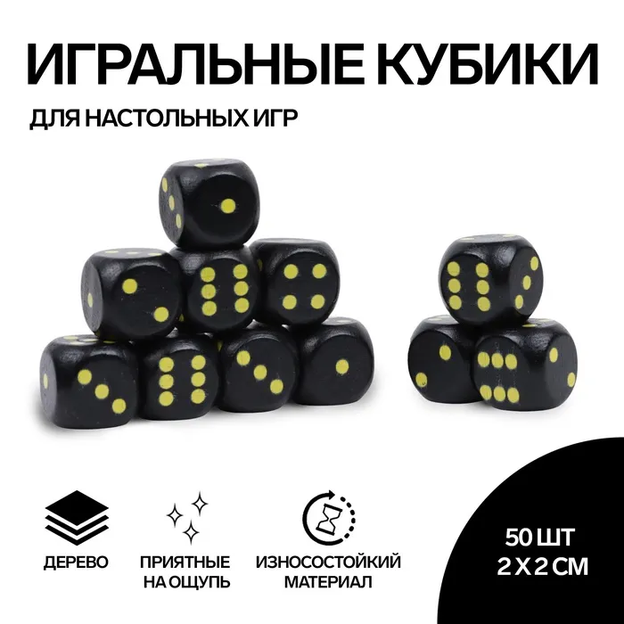 Деревянные игральные кости - это идеальный выбор для любителей настольных игр и развлечений. Набор состоит из 50 деревянных костей, каждая из которых имеет размер 2 x 2 см - этого вам точно хватит для множества настолок. Если вы потеряли старые игральные кости или они пришли в негодность - наши станут отличной альтернативой.