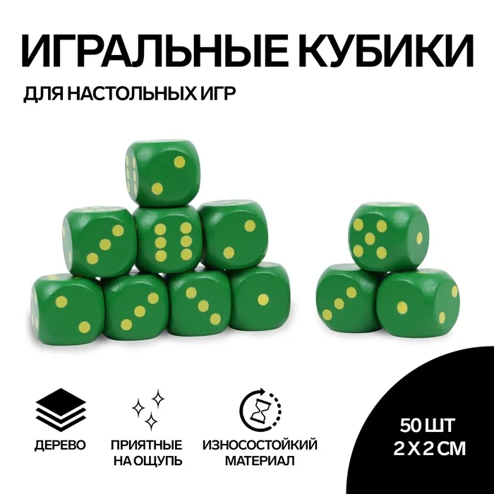 Кубики игральные, 2×2 см, набор 50 шт., зелёные — Характеристики